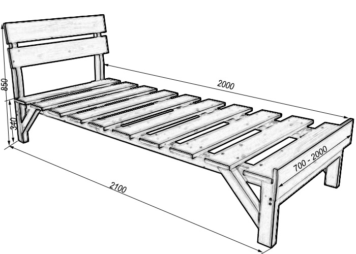 Сп.м.: 700х2000х500 мм, Габариты (ШхГхВ): 700х2100х340 (850) мм