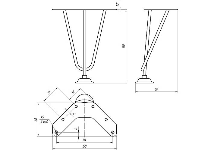 Материал: сталь Использование прутка d - 5,25 мм. Регулировка по высоте. Пластмассовый подпятник для защиты пола. Цвет: черный.