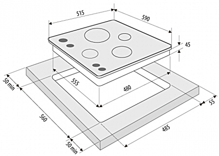Габариты (ШхГхВ): 590 х 515 х 55 мм