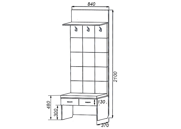 Габариты (ШхГхВ): 840х370х2100 мм