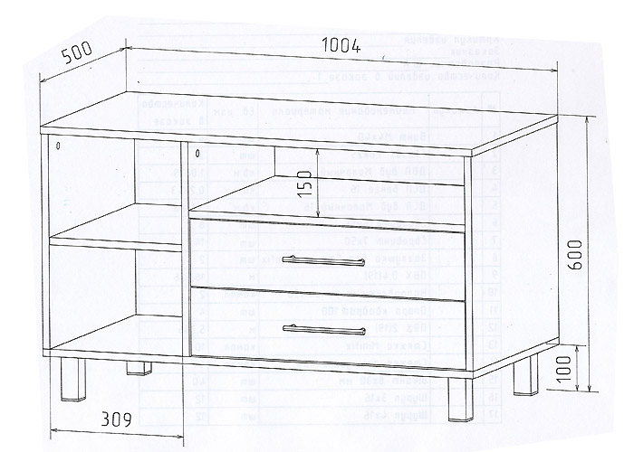 Габариты (ШхГхВ): 1004х500х600 мм