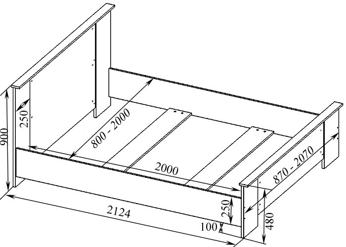 Спальное место: 800-2000х2000х500 Габарит (ШхГхВ): 870-2070х2124х900