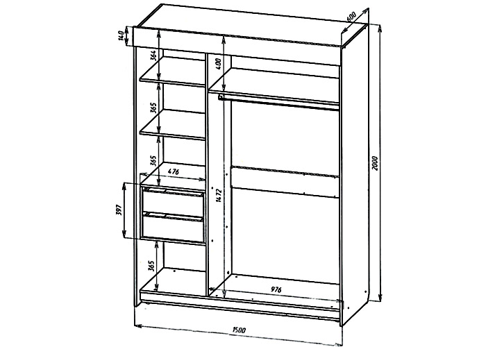 Габариты (ШхГхВ): 1500х600х2000 мм