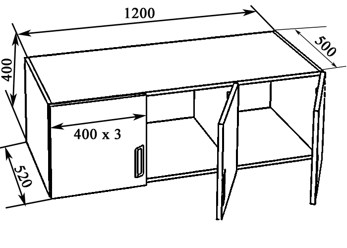 Габариты (ШхГхВ): 1200 х 520 х 400 мм