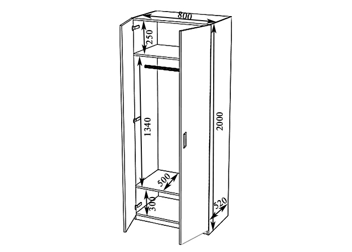 Габариты (ШхГхВ): 800 х 520 х 2000 мм