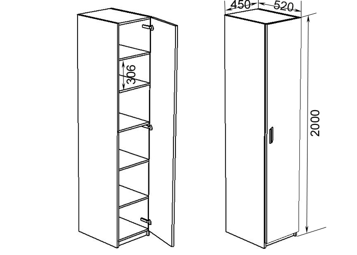Габариты (ШхГхВ): 450 х 520 х 2000 мм