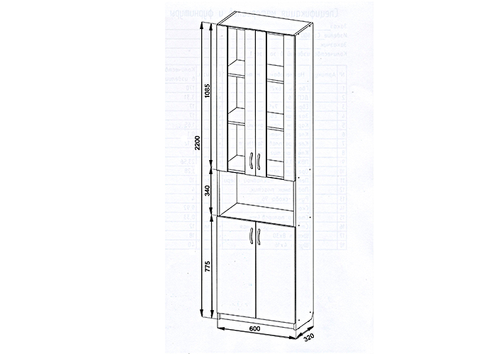 Габариты (ШхГхВ): 600х320х2200 мм