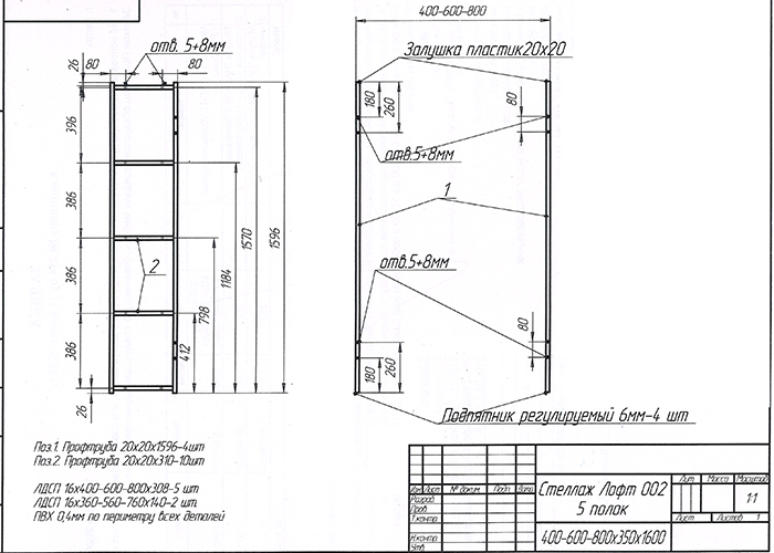 Габариты (ШхГхВ): 400-600-800 х 350 х 1600 мм
