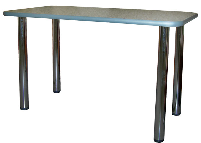Стол изготовлен из кухонной столешницы с пластиковым покрытием, поэтому глубина стола не более 600/700 мм. Возможно изготовление по размерам заказчика. Опоры хромированные. Наличие и цвета необходимо уточнять у менеджеров.