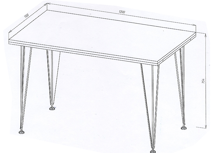 Оригинальный, легкий стол на металлических опорах идеально подойдет к современному интерьеру в стиле Лофт. Варианты столешницы: ЛДСП / пластик 25 мм толщиной.