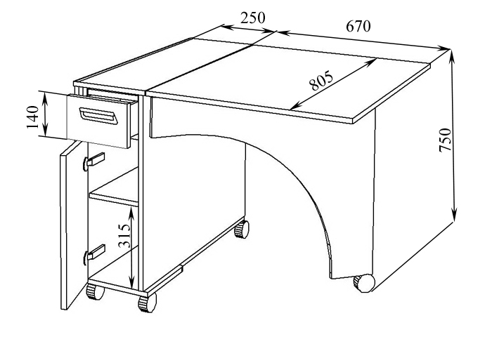 Складская продукция. Собранный. На роликах. С двух сторон выдвижной ящик и полка с дверкой. Упакован в стрейч-пленку. Наличие и цвета ЛДСП необходимо уточнять у менеджеров.