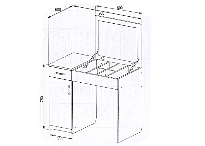Габарит (ШхГхВ): 900х500х750/1250 мм