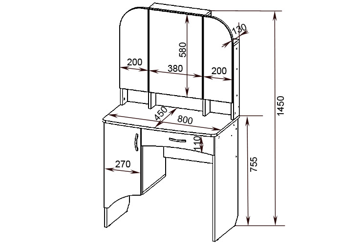 Габарит (ШхГхВ): 800 х 450 х 1650 мм