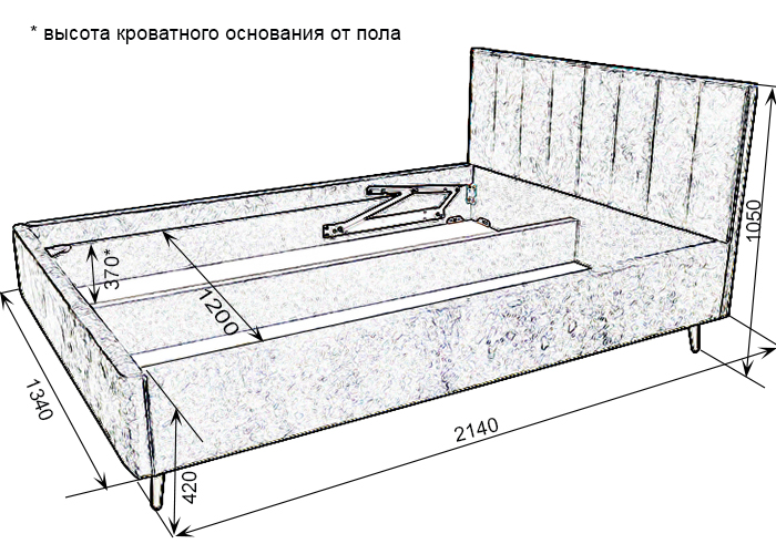 ←→габариты каркаса кровати на опорах 150 мм