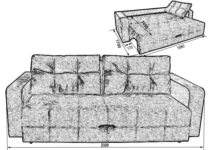 Габариты (ШхГхВ): 115/170 х 234 х 95 см/ Спальное место: 165 х 198 см