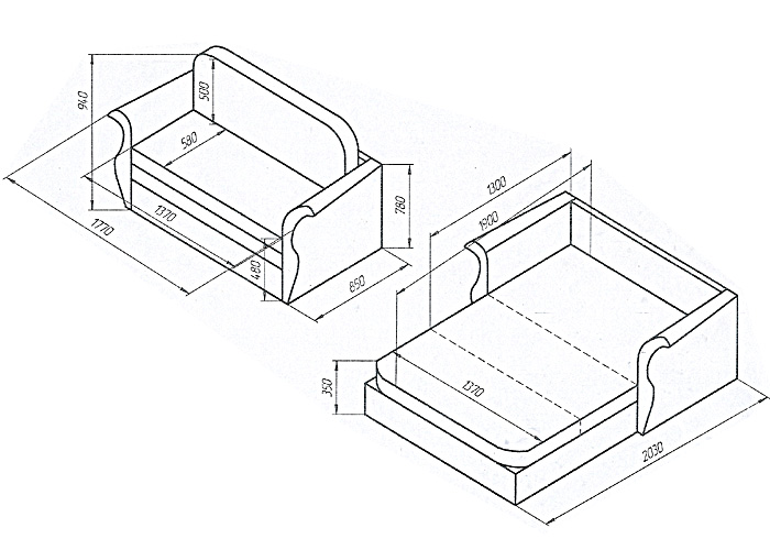 Габаритные и спальные размеры по ГОСТу 19917-93 могут варьироваться в пределах ±2 см.