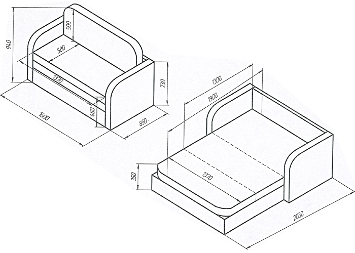 Габаритные и спальные размеры по ГОСТу 19917-93 могут варьироваться в пределах ±2 см.