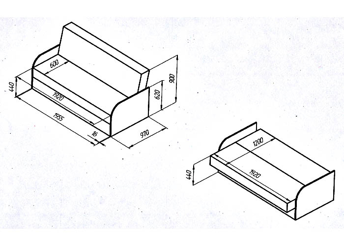 ЭКОНОМ вариант. Диван-кровать с механизмом трансформации “книжка”. Каркас: брус, фанера.