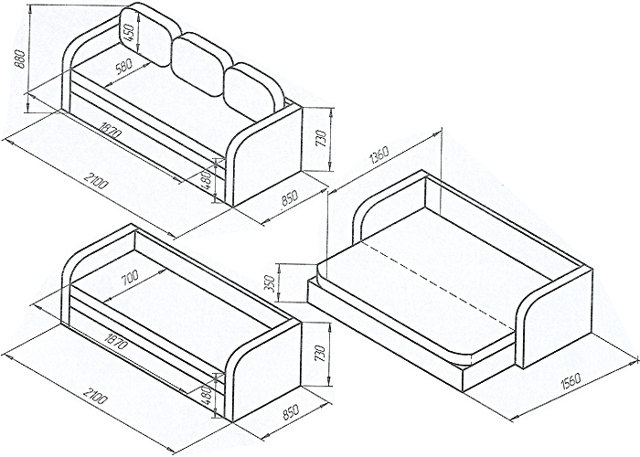 Габаритные и спальные размеры по ГОСТу 19917-93 могут варьироваться в пределах ±2 см.