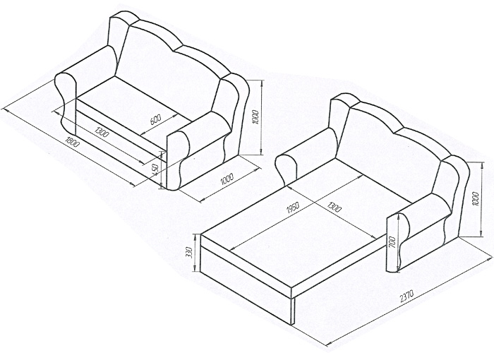 Габаритные и спальные размеры по ГОСТу 19917-93 могут варьироваться в пределах ±2 см.