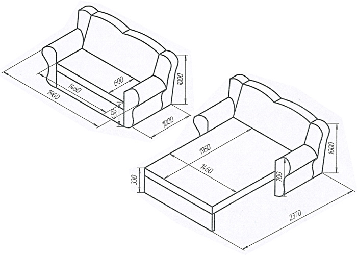 Спальное место: 146 х 195 Габариты: 196 х 100/237 см