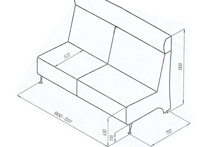 Современный диван без спального места. Наполнение поролон. Для изготовления на заказ необходимо выбрать обивочные ткани.