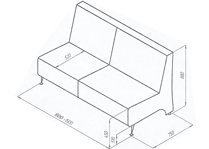 Современный диван без спального места. Наполнение поролон. Для изготовления на заказ необходимо выбрать обивочные ткани.