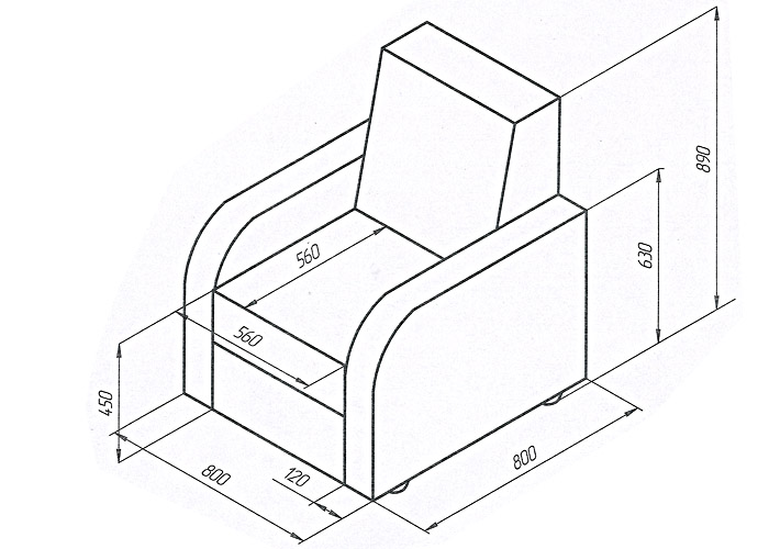 Компактное кресло для отдыха на пружинном блоке. Ящик под сидением. Для изготовления на заказ необходимо выбрать обивочные ткани.