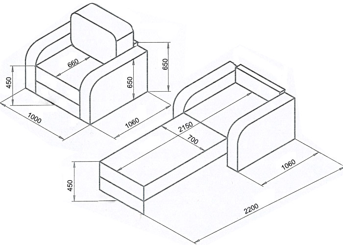 Спальное место: 70х215 см, Габариты: 100х115/223х95 см