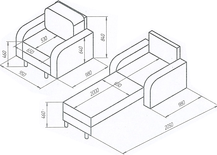 Кресло-кровать на пружинных блоках. Для изготовления на заказ необходимо выбрать обивочные ткани.