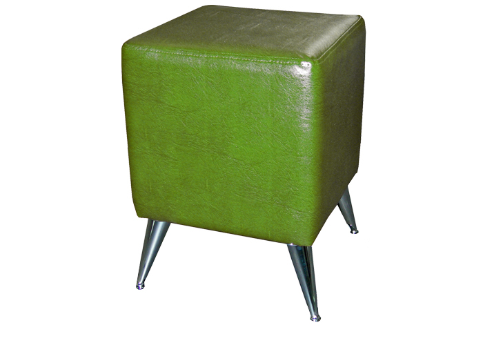 Пуф на высоких хромированных опорах для столовой зоны. Для изготовления на заказ необходимо выбрать обивочные ткани.