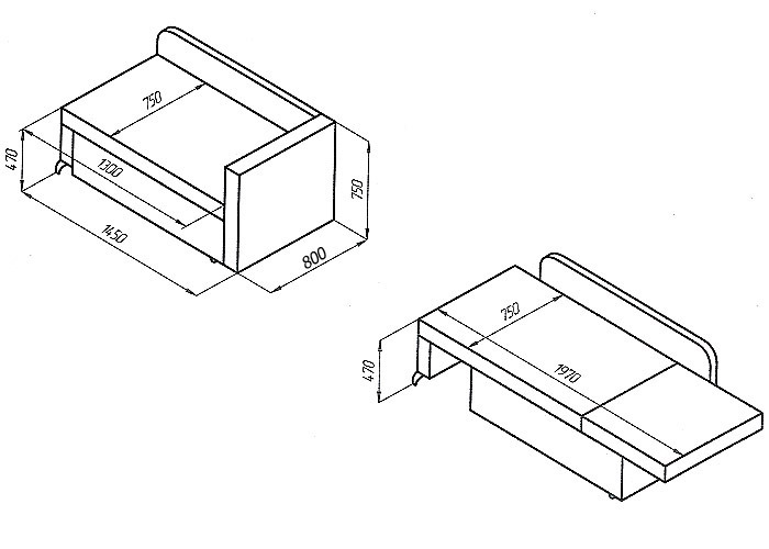 Спальное место: 75х197 Габариты: 80х145/197 см