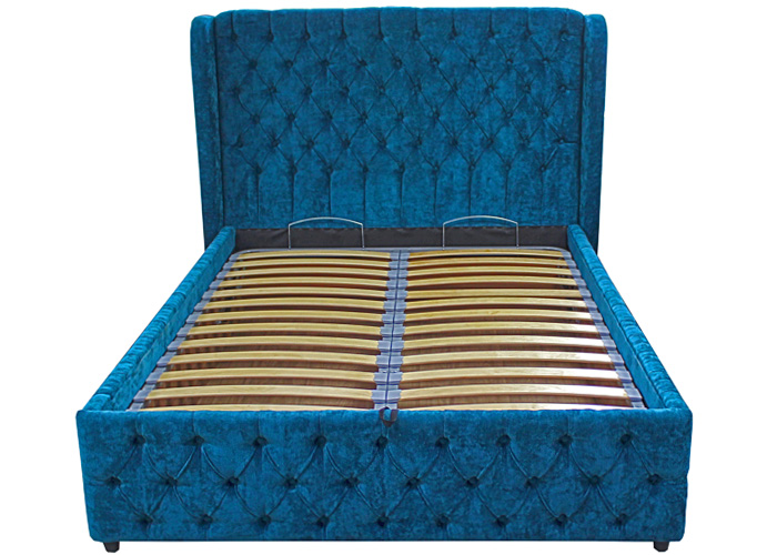 Каркас кровати мягкий 003. Новая модель класса люкс. Варианты фактуры обивки, цвета, наличие декоративных элементов (страз, пуговиц). Можно комплектовать с кроватным основанием на опорах либо бельевым ящик с подёмным кроватным основанием на газлифтах. Траспортируется в разобранном виде. Для изготовления на заказ необходимо выбрать обивочные ткани.