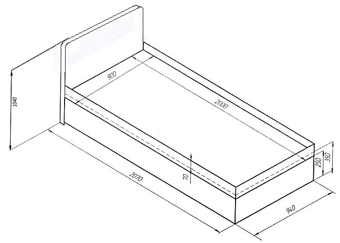 Спальное место: 90 х 200 х 45 Габариты: 94 х 209 х 84/104см