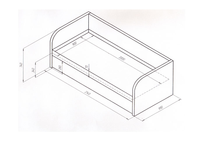 Односпальная тахта с двумя боковинами, ящиком для белья и местом для вкладного матраса. Матрас поднимается механизмом "подъем тахты". Возможно изменение длины и ширины спального места по запросу заказчика. Транспортируется со съемными спинками. Для изготовления на заказ необходимо выбрать обивочные ткани.