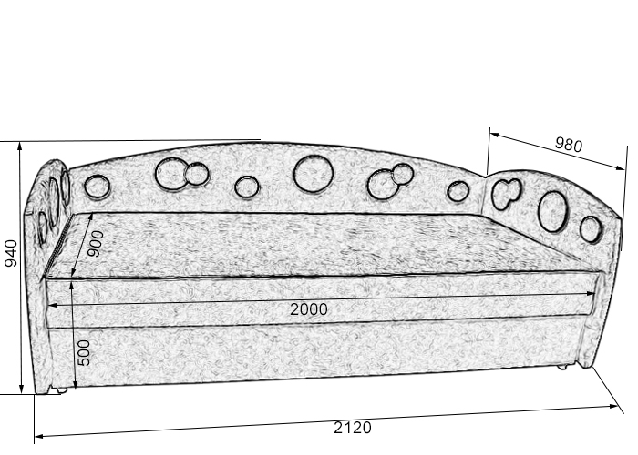 Односпальная тахта с пружинным блоком и ящиком для белья. Матрац поднимается механизмом "подъем тахты". Спинка и боковины декорированы накладными панелями круглой формы. Возможно изменение длины и ширины спального места по желанию заказчика. Траспортируется со съемными боковинами и спинкой. Для изготовления на заказ необходимо выбрать обивочные ткани.